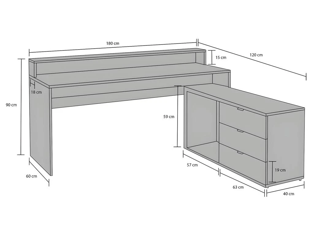 - Tiroirs : L63 x P40 x H19 cm