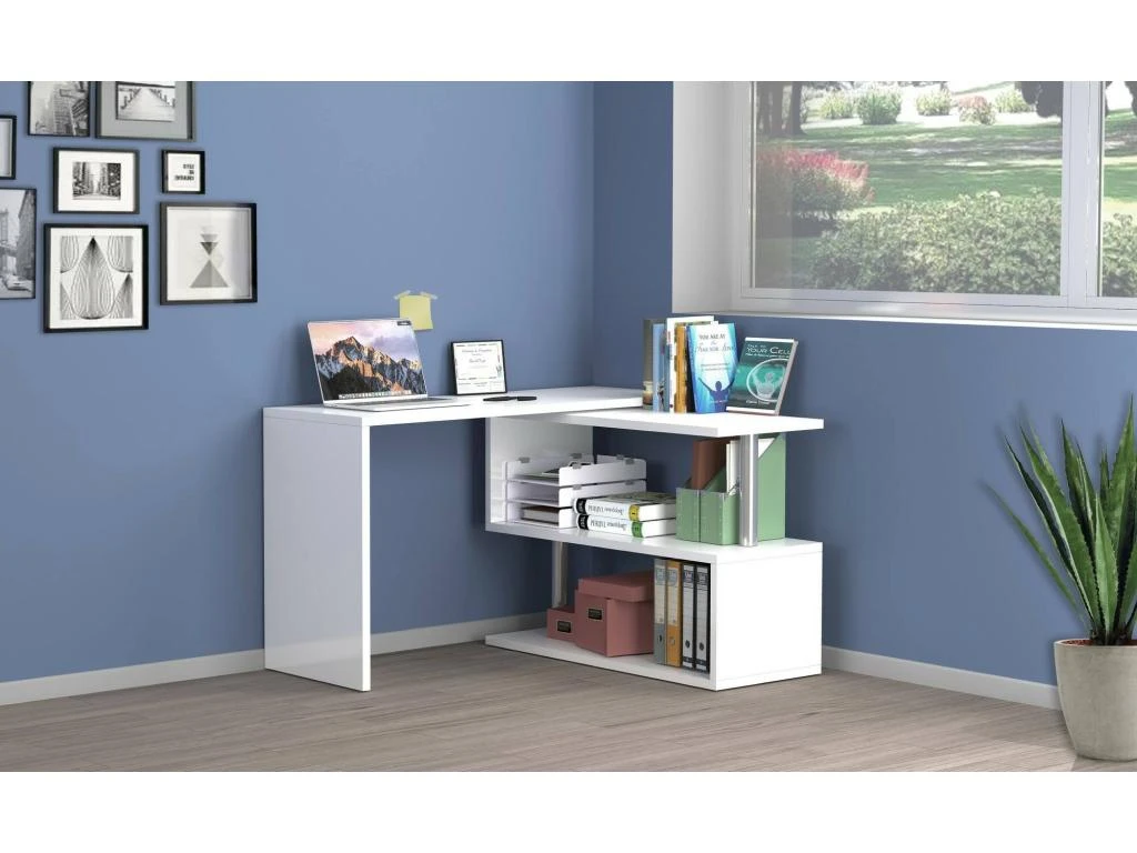 STRUCTURE ET UTILISATION – Bureau rĂ©versible de style moderne avec Ă©tagère Ă deux tiroirs sous le plan de travail – Le bureau d’angle pratique, innovant et fonctionnel est la solution idĂ©ale pour meubler de manière intelligente les petits espaces, un home studio, une chambre ou un bureau : il se caractĂ©rise par un style moderne et linĂ©aire – Le plan de travail est spacieux et vous pouvez utiliser les Ă©tagères ci-dessous pour ranger vos objets lorsqu’ils ne sont pas utilisĂ©s.