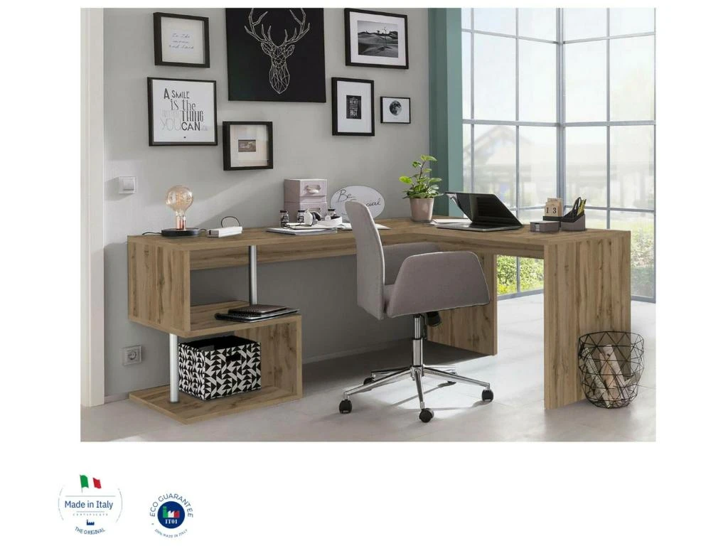 STRUCTURE ET UTILISATION – Le bureau en zigzag pratique, innovant et fonctionnel est la solution idĂ©ale pour meubler de maniĂšre intelligente de petits espaces, un bureau ou une chambre et des bureaux: il se caractĂ©rise par un style moderne et linĂ©aire – Le plan de travail est spacieux, parfait pour hĂ©berger un PC et tout ce dont vous avez besoin pour votre travail – Les deux Ă©tagĂšres qui se crĂ©ent sous le plan de travail vous permettront d’accueillir vos objets utiles au travail de maniĂšre discrĂšte et ordonnĂ©e.