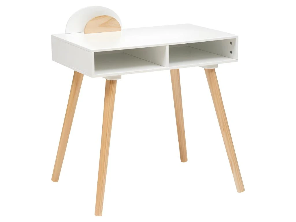 Ce bureau 2 cases enfant blanc de la marque Atmosphera est conçu spécialement pour les enfants. Ce bureau comporte deux compartiments de rangement qui offrent de l’espace pour organiser les fournitures scolaires et les petits objets. Il est parfaitement adapté à une chambre d’enfant ou à un coin d’étude, offrant à l’enfant un espace dédié pour faire ses devoirs, dessiner ou bricoler. Le design simple et fonctionnel de ce bureau le rend idéal pour encourager la concentration et la créativité des enfants. A monter soi même. Dimensions : L. 87 x l. 47 x H. 75 cm. Poids : 10,35 kg. Matière : Panneaux de fibres de bois et pin. Marque : Atmosphera.