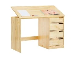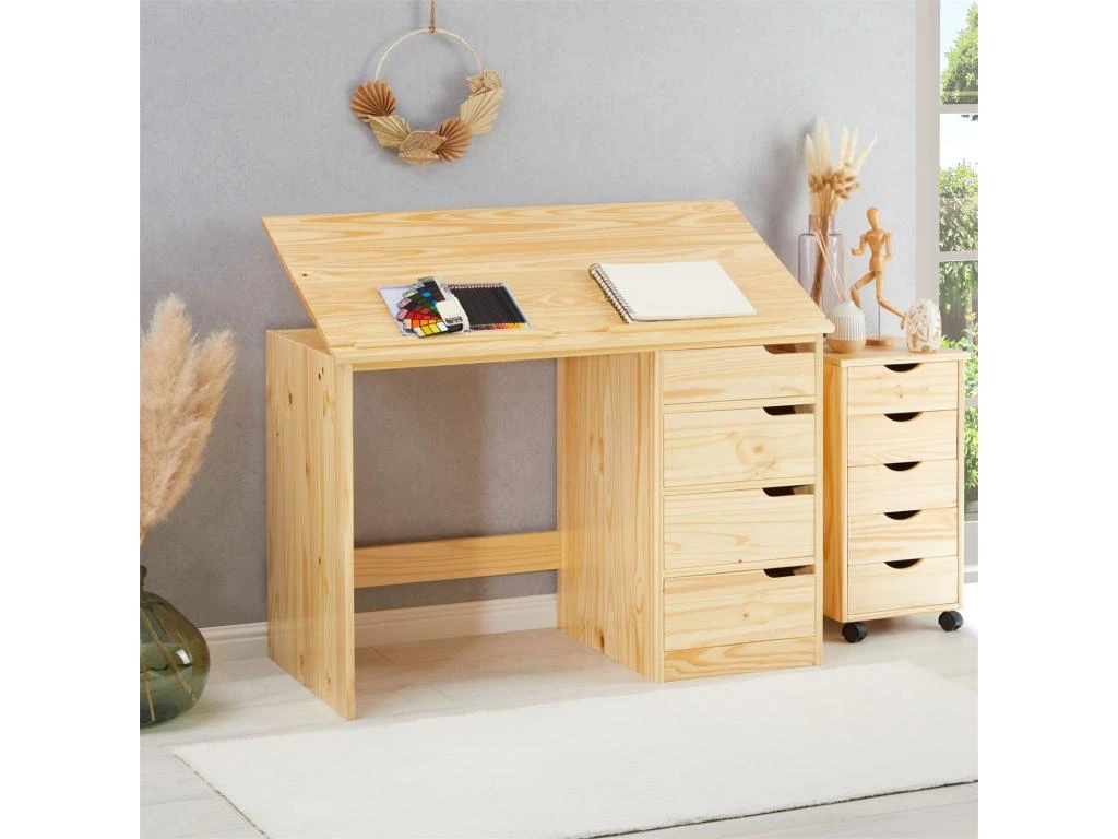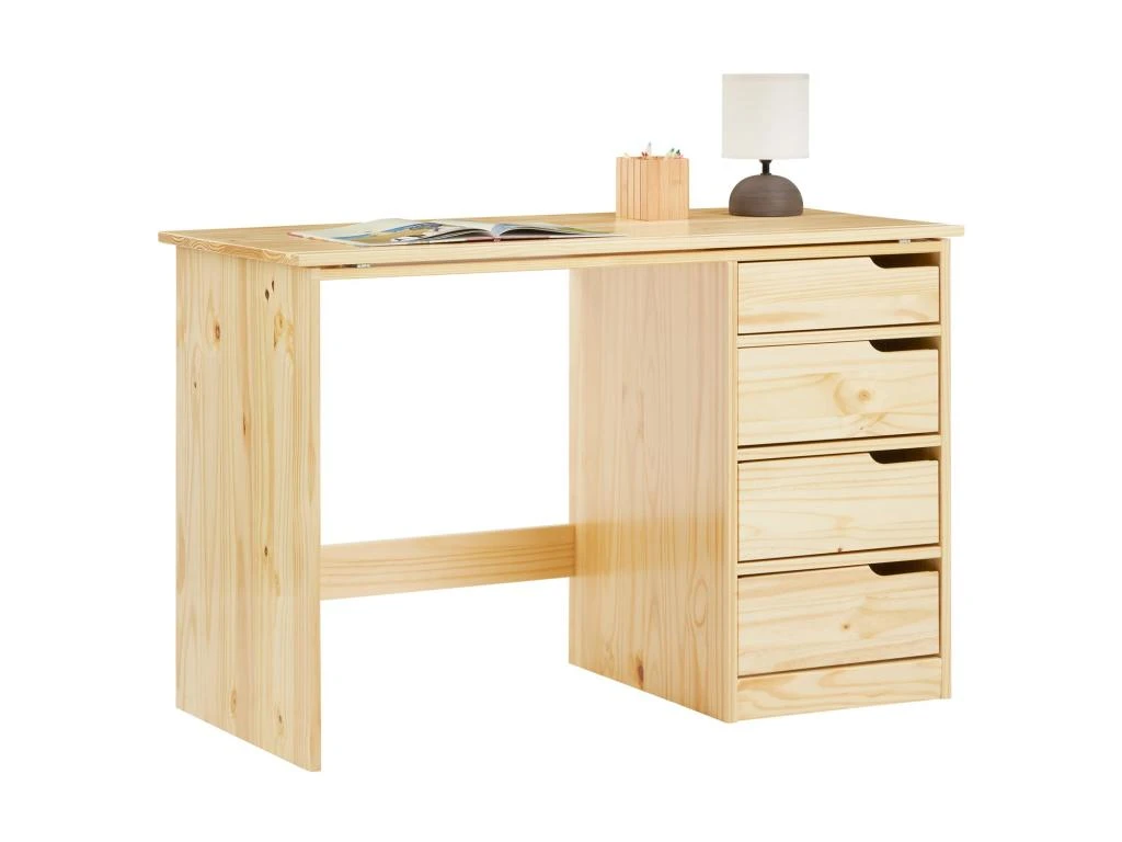 – Le bureau est fabriqué en pin massif, de coloris naturel