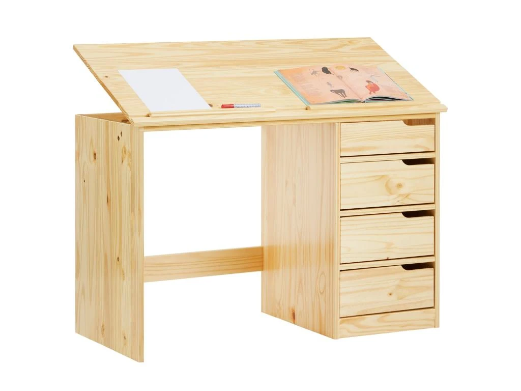 … sera le compagnon et le complice de votre petit écolier pour ses devoirs et bricolages. Grâce à son plateau inclinable, votre enfant pourra ajuster son travail au niveau des yeux et adopter une posture correcte pour des activités tout en confort. Le pupitre, résistant et facile d’entretien, comporte 2 réglettes amovibles pour retenir ses stylos et crayons lorsqu’il est incliné. Les 4 tiroirs, aux rebords biseautés pour plus de facilité de prise en main, permettront d’organiser ses cahiers, livres et autres fournitures scolaires.