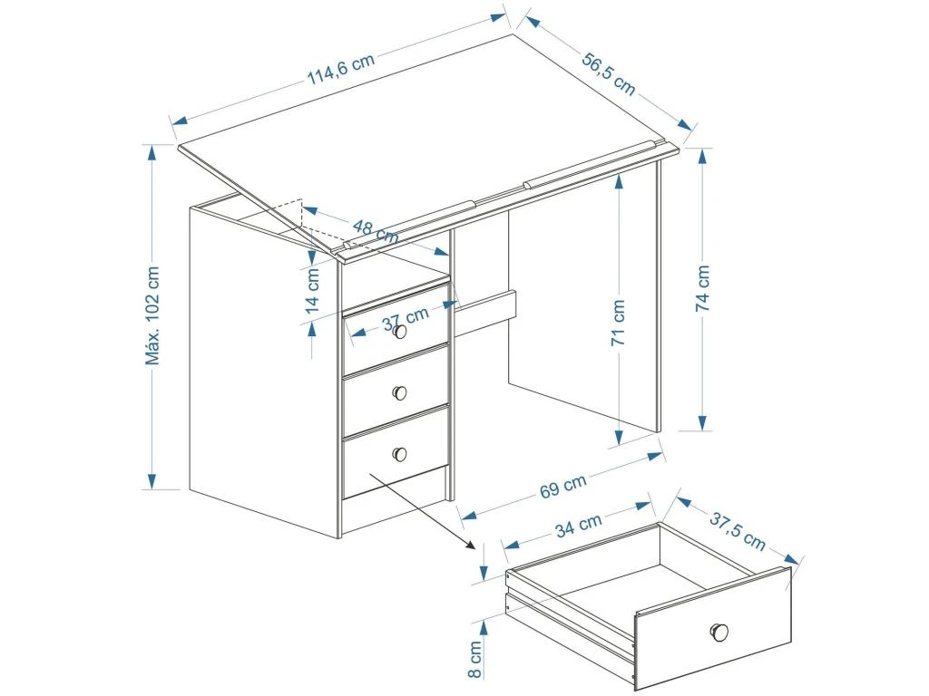 – Largeur tiroir: 34 cm
