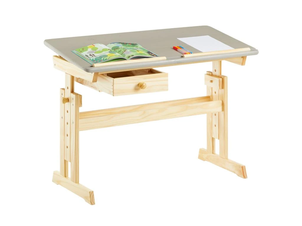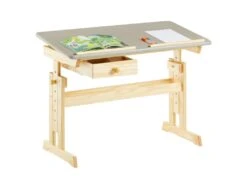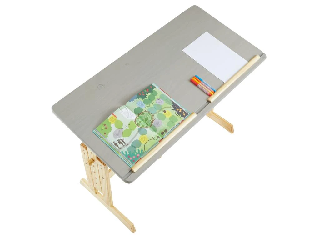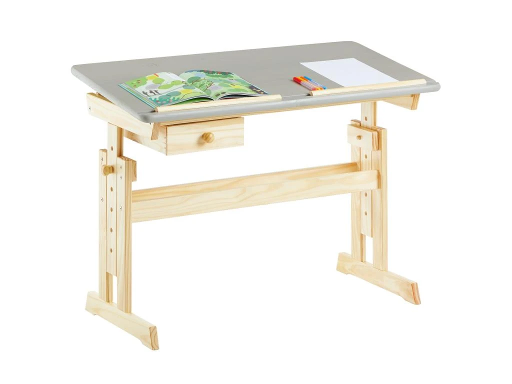 … sera l’élément indispensable de votre petit écolier pour sa première rentrée des classes. Spécialement conçu pour s’adapter à la croissance de votre enfant, la hauteur du bureau est réglable et le plateau s’incline pour améliorer son confort. Il dispose également d’une réglette amovible, évitant de perdre ses stylos lorsque le bureau est incliné, et d’un tiroir pour ranger quelques affaires et dont le placement est libre à gauche ou à droite. Ce bureau est également équipé d’une barre transversale pour plus de stabilité.