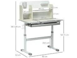– Dim. bureau : 80L x 52l x 88 -109H cm, angle réglable : 0-60°