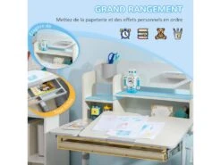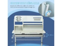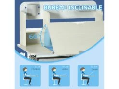 – Nombreux réglages possibles : hauteur du bureau réglable, évolutif et plateau inclinable à un maximum de 60°