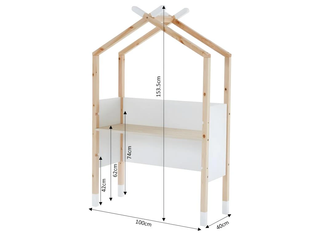 Bureau évolutif enfant en forme de tipi TINY – Structure en MDF et bois massif de pin – Revêtement mélaminé blanc – Dimensions : L100 x P40 x H153,5cm