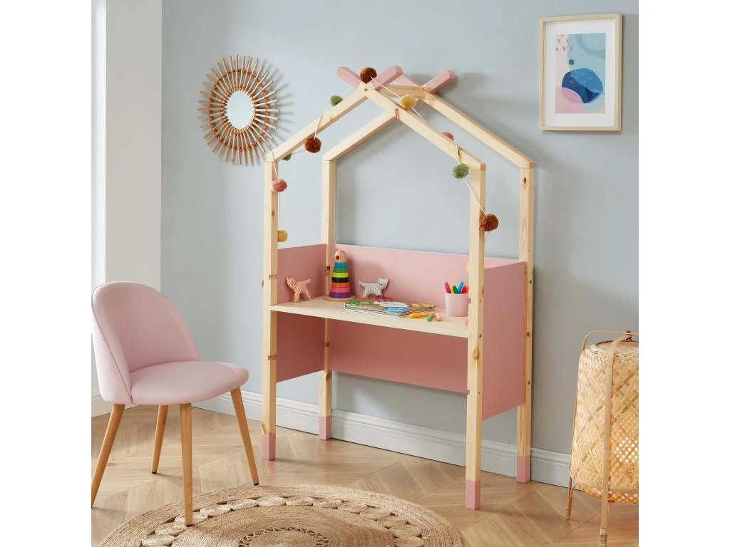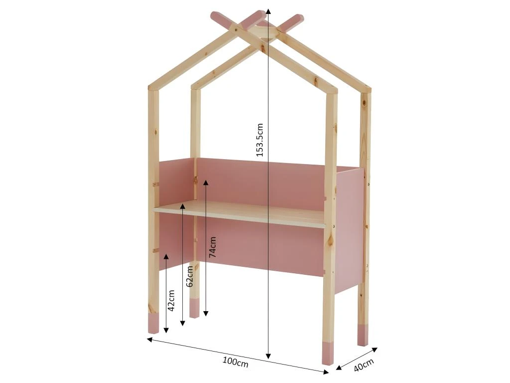 Bureau Ă©volutif enfant en forme de tipi TINY – Structure en MDF et bois massif de pin – RevĂŞtement mĂ©laminĂ© rose – Dimensions : L100 x P40 x H153,5cm