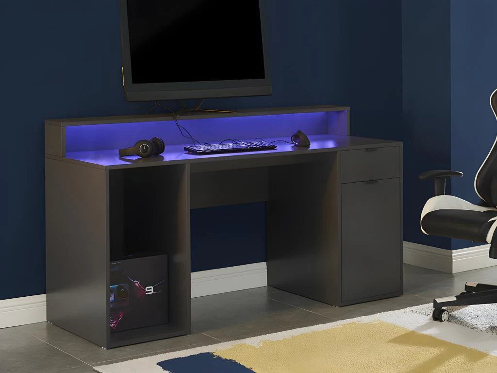 Le bureau RYDER a été conçu pour satisfaire les gamers, du plus novice au plus expérimenté. Fabriqué en MDF et doté de niches, d’un tiroir, d’une porte, ce bureau est aussi solide que pratique ! Enfin, ses LEDs vous permettront de plonger instantanément dans l’ambiance de votre jeu vidéo.