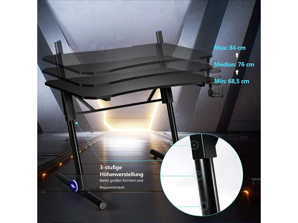 【Design sobre et utilisation polyvalente :】Le bureau est équipé d’un porte-gobelet et d’un support pour manettes de jeu afin de vous offrir un confort optimal. La table peut être réglée à 3 hauteurs différentes (69 cm/76 cm/83,5 cm) pour répondre aux besoins de différentes personnes. De plus, ce bureau peut être utilisé comme bureau de gaming, bureau pour travailler à domicile ou pour écrire.