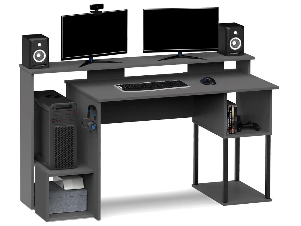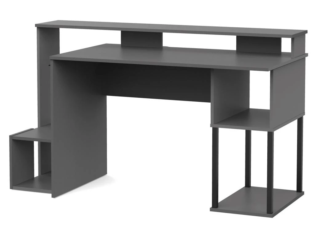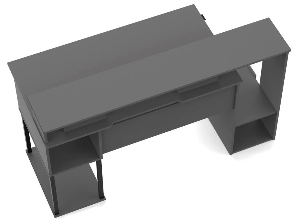 Bureau Gamer, Table De Jeu Avec Compartiments En Aggloméré Avec Finition Grise – Longueur 150 X Profondeur 67 X Hauteur 77 Cm