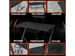 Aimez-vous les jeux e-sports ? Êtes-vous un joueur de e-sport professionnel ? Eh bien, ce sera votre meilleur choix ! Notre bureau gaming est spécialement conçue pour l’e-sport ! Il est équipé d’une tablette supplémentaire, 3 crochets afin de suspendre des manettes de jeu et 1 porte-gobelet ! N’hésitez plus ! Achetez un !
