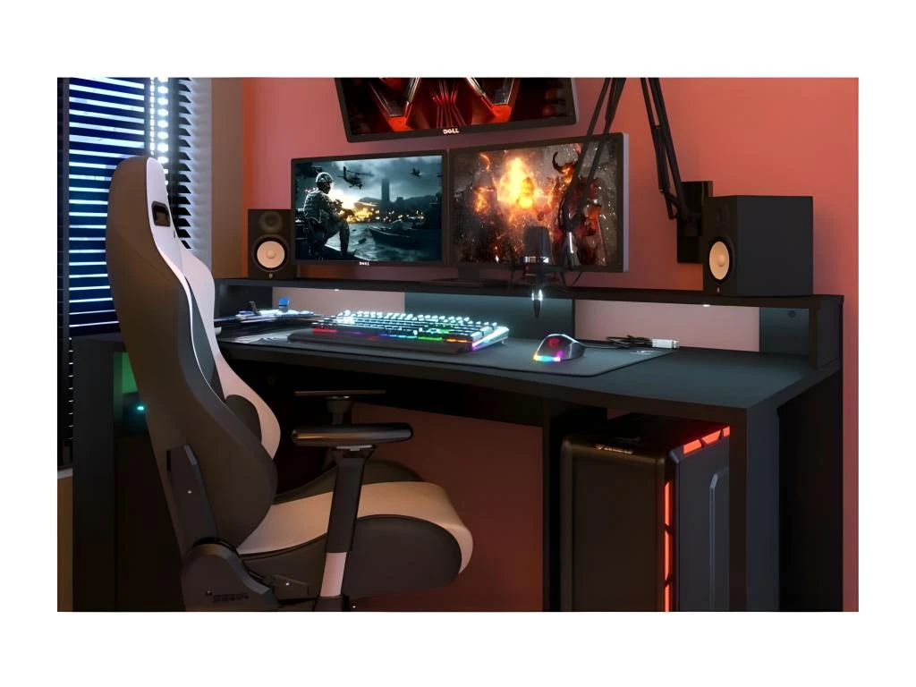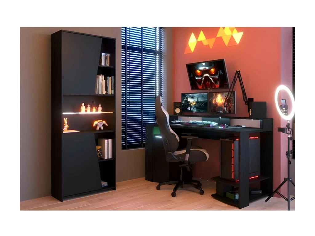 Secrétaire Avec 2 Porte Et 3 Tiroirs – MDF Et Métal – Blanc Laqué – ERWIN