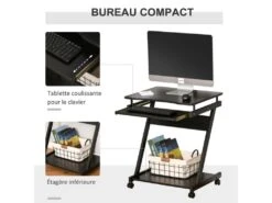 - Charge max recommandée : 15 kg (plateau), 15 kg (étagère), 5 kg (clavier)