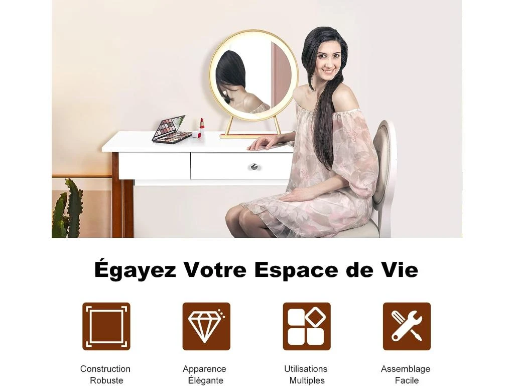 - ăGrand plan de travail et espace de rangementăcette table a une grande surface de travail, ce qui vous rend trĂšs Ă l’aise lorsque vous travaillez dessus et rend votre travail plus efficace. En mĂȘme temps, elle a un grand tiroir. Lorsque vous vous maquillez ou travaillez, vous pouvez mettre des cosmĂ©tiques ou des livres dans le tiroir sans avoir Ă vous soucier du dĂ©sordre. Gardez l’environnement propre et confortable est propice Ă la santĂ© physique et mentale.