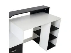 Optez pour ce bureau informatique Ase de MYCOCOONING pour travailler et en faire votre petite bibliothèque personnelle. Conçu selon un design contemporain imprégnant un style graphique, il est parfait pour ranger vos petites décorations. Peu encombrant, il permet un gain d’espace considérable dans votre salle d’étude. Vous pouvez également l’installer dans votre chambre en guise de table TV, il se fera discret dans un coin. Ce meuble de bureau est doté de plusieurs cases de rangement dont une tablette pour imprimante, 3 étagères latérales et une étagère supérieure centrale. Le tout est complété par deux tiroirs coulissants pour classer vos dossiers importants. La singularité de ce mobilier réside dans sa conception en MDF qui garantit sa robustesse et sa praticité d’utilisation. Il est proposé en noir et blanc ce qui donne sa simplicité. Pour le monter, il vous suffit de suivre la notice d’utilisation fournie.