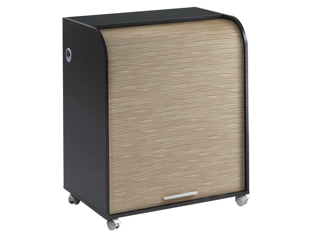 Bureau informatique noir à roulettes avec rideau imprimé