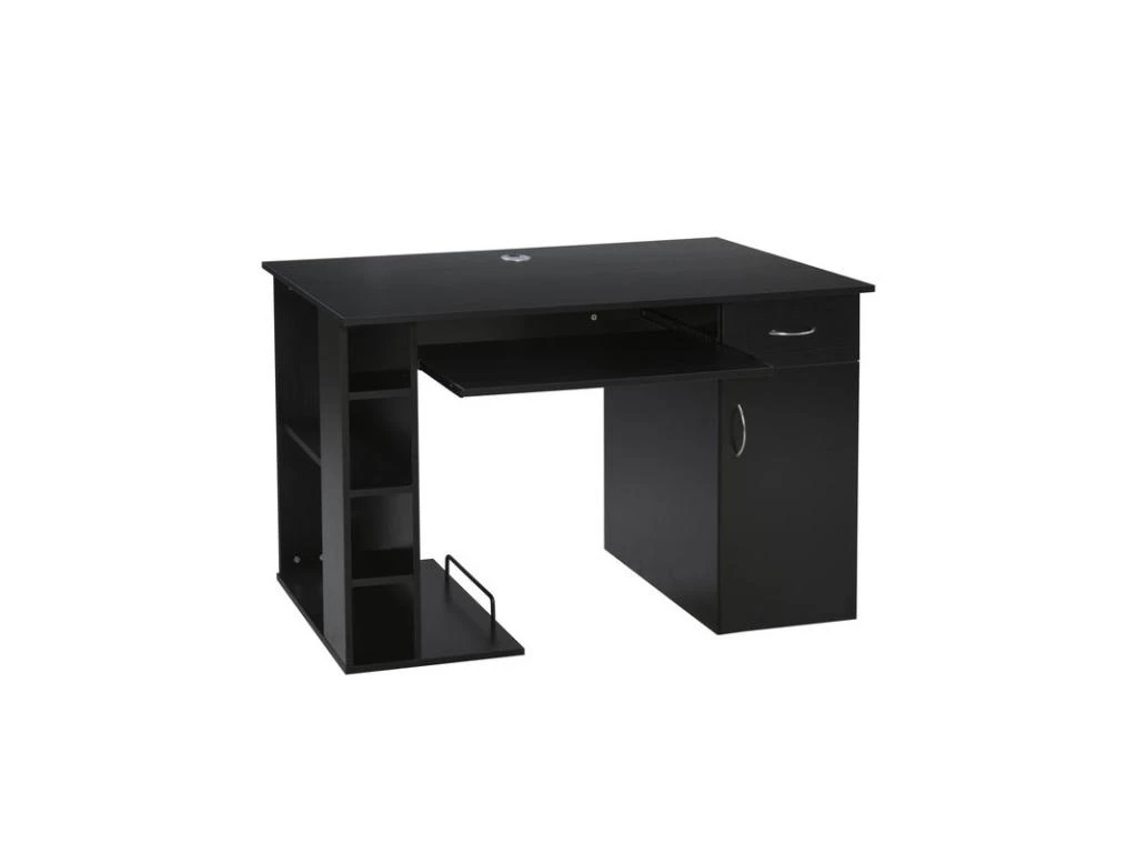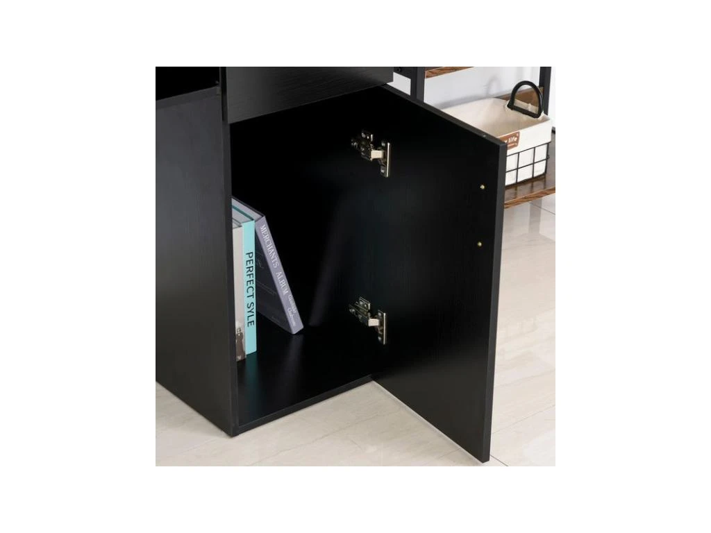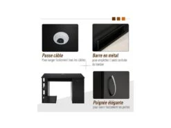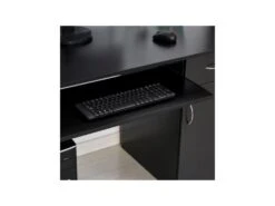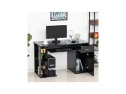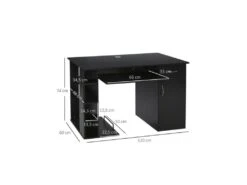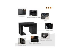 Design et stylé, le bureau informatique noir STELLAR de MYCOCOONING propose des rangements astucieux. Sous le grand plateau principal, un espace unité centrale, une tablette coulissante pour clavier, un tiroir coulissant, un vaste placard et des étagères latérales. Robuste et facile à entretenir, son effet matière grain de bois est très réaliste.