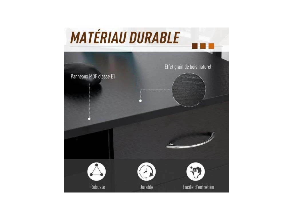 - Charge max. recommandée : 30 Kg (plateau), 5 Kg (tiroir), 5 Kg (étagère)