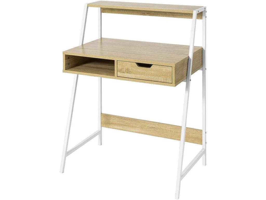Bureau 1 Porte 1 Tiroir – Decor Bois Blanc Et Gris – L 140 X P 60 X H 75 – COLOGNE