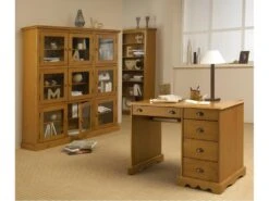 – Structure Pin Massif panneauté, replaqué pin teinté miel. (Cette technique de fabrication évite aux panneaux pin massif de se déformer).