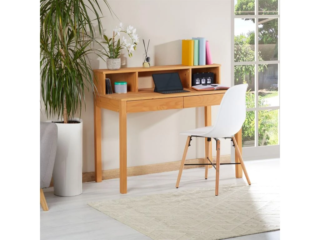 … vous permettra d’amĂ©nager Ă©lĂ©gamment votre espace de travail. Grâce Ă ses 3 niches et ses 2 tiroirs vous pourrez facilement y ranger vos affaires pour un maximum d’organisation. Son grand plan de travail sera parfait pour y placer votre ordinateur et autre accessoire de bureau lors d’une journĂ©e de travail. Avec son style vintage et sa structure en bois massif, il trouvera facilement sa place dans votre intĂ©rieur !