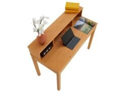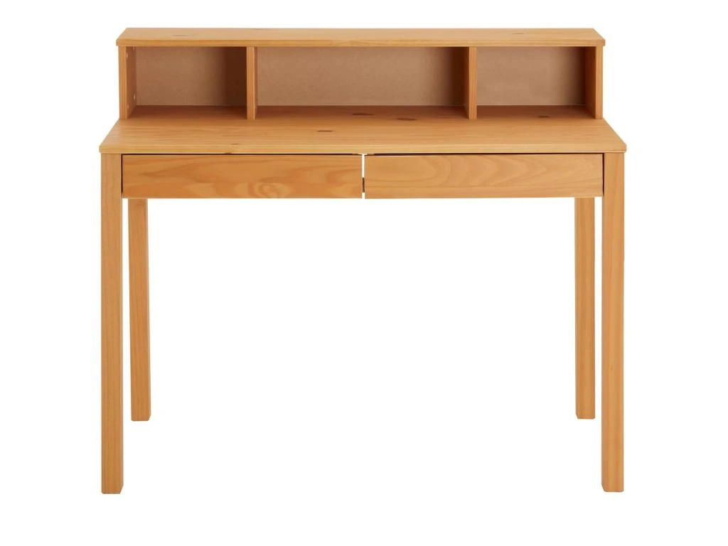 – Le bureau est fabriquĂ© en pin massif lasurĂ© brun.