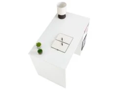 – Le bureau est fabriqué en pin massif lasuré blanc.