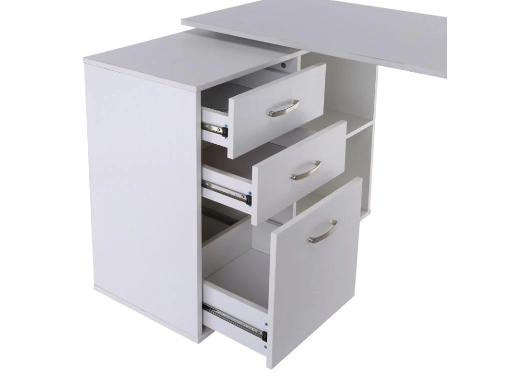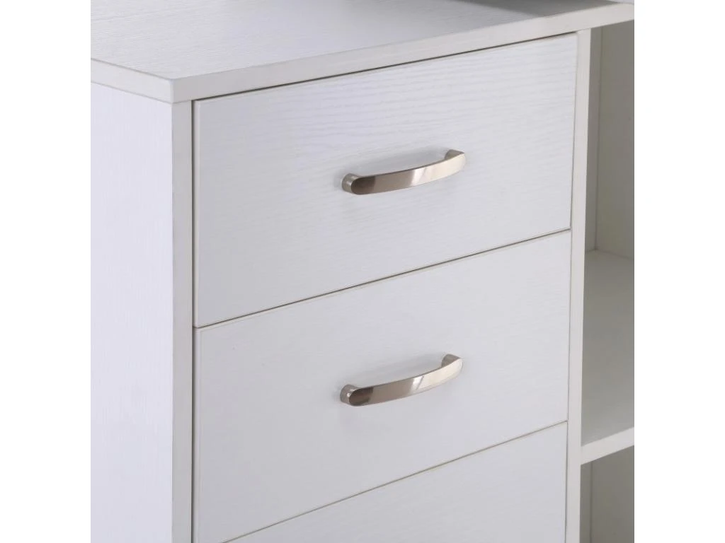 Avec son design sobre et moderne, le bureau Solibac est idéal pour meubler une chambre, un bureau ou une salle d’étude. Polyvalent, il peut être disposé en bureau droit ou en bureau d’angle. Ses trois tiroirs coulissants et ses deux niches en font un bureau très fonctionnel. Son grand plateau permet d’accueillir de nombreux documents tout en préservant une place pour l’ordinateur portable. Stable avec ses patins antidérapants, le bureau modulable Solibac est également robuste. Mycocooning fournit une notice d’assemblage illustrée pour un montage facile.
