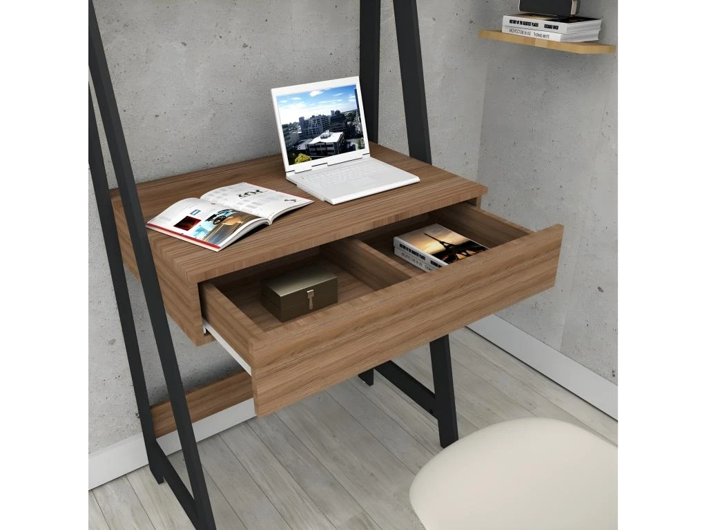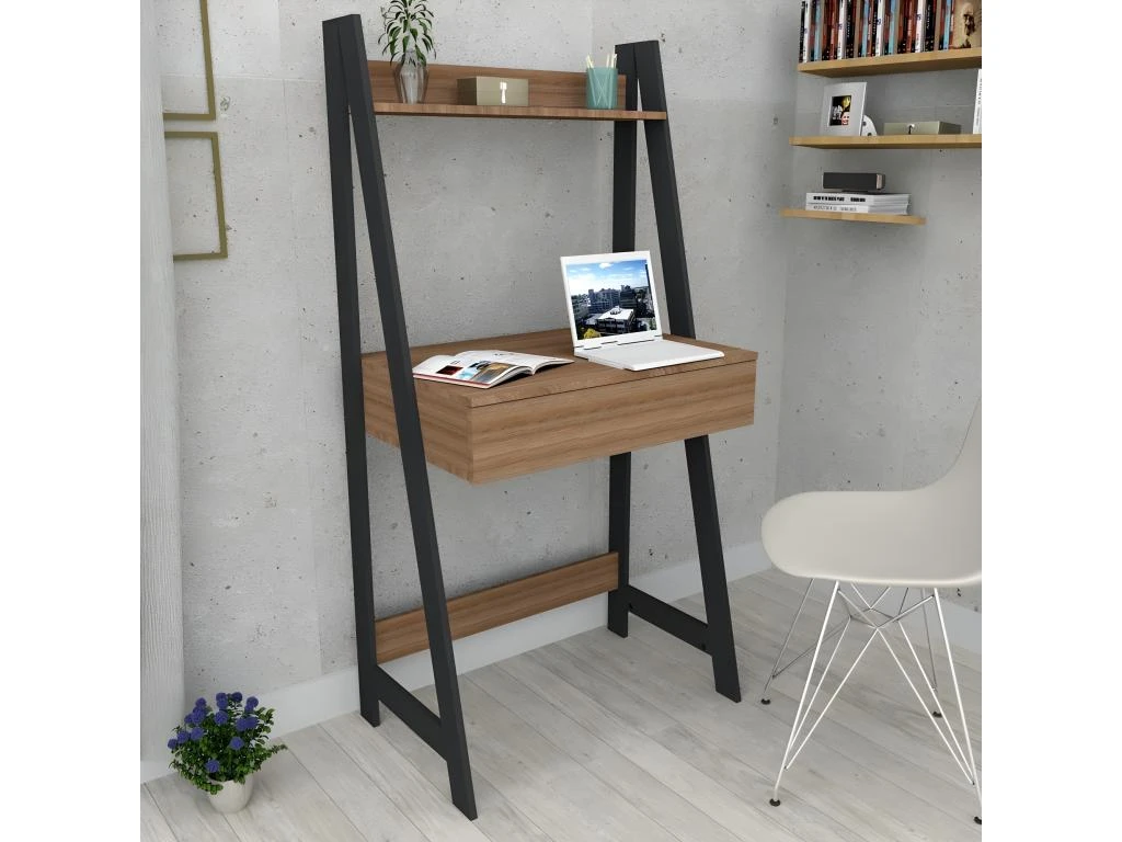 Bureau Secrétaire Contemporain. Coloris Imitation Châtaignier + Pieds Noirs.