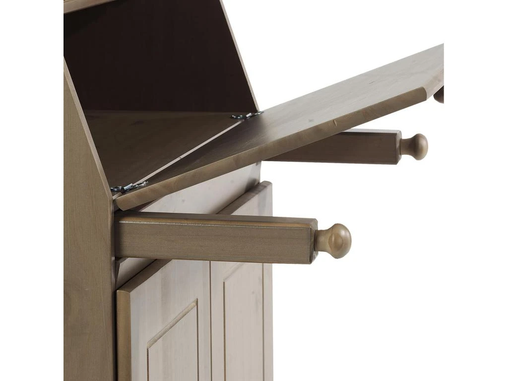 – Le secrétaire est fabriqué en pin massif, recouvert d’une lasure de couleur taupe.