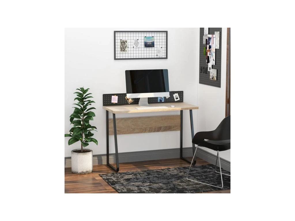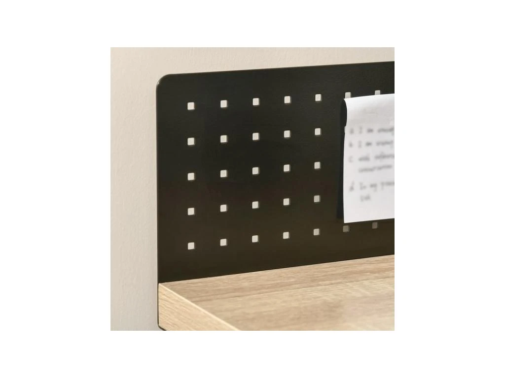 Design et épuré, le bureau secrétaire Ethan de MYCOCOONING séduit par ses lignes douces et son piètement arrondi. Le grand plateau offre un bel espace de travail. La plaque perforée arrière en métal permet d’y accrocher des notes, photos, croquis ou décorations. Le passe-fils est idéalement situé pour préserver une surface nette même avec une installation informatique fournie. Le piètement est doté de patins antidérapants qui conservent le bureau stable et ils évitent de marquer les sols. Cet élégant bureau peut prendre place dans une entrée, une chambre ou un salon à la déco industrielle.
