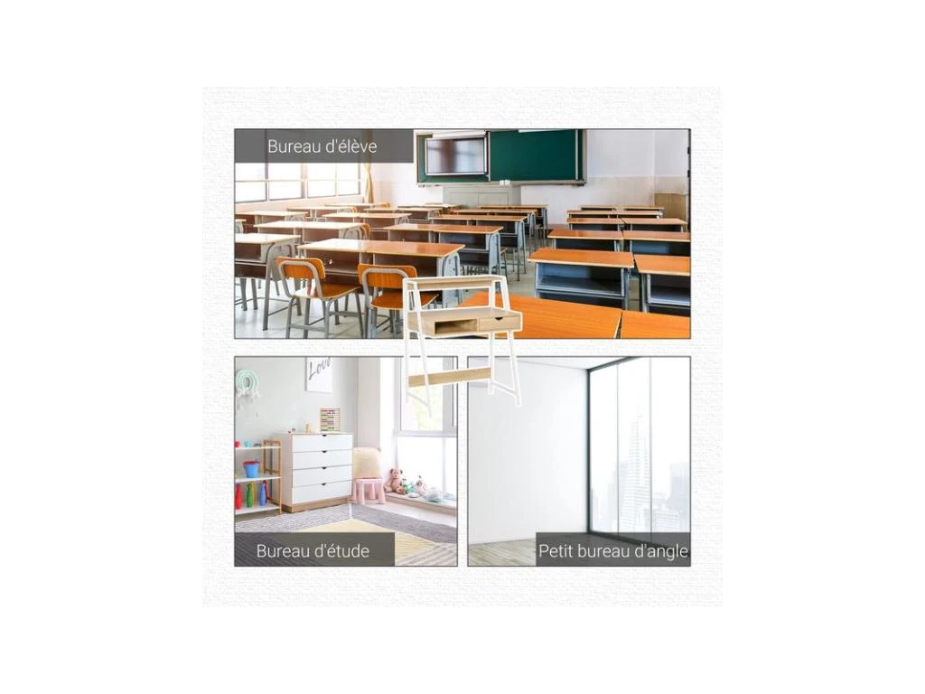 - Charge max. recommandée : 50 Kg (bureau), 5 Kg (étagère / tiroir)