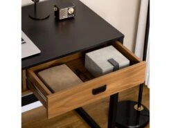 – Bureau design industriel mélant avec élégance aspect bois noir et imitation bois de noyer