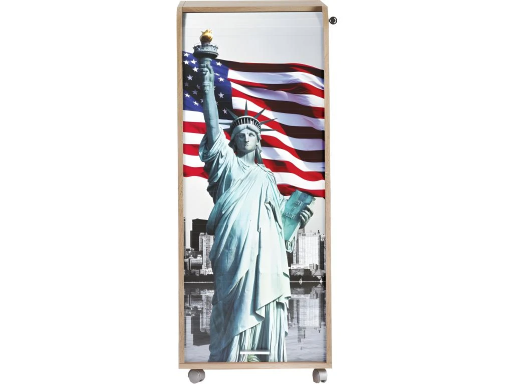 Meuble gain de place, grâce à son rideau qui coulisse de haut en bas.