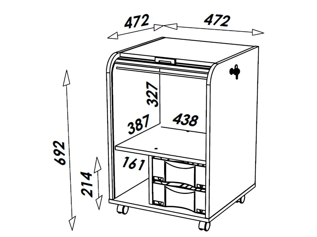 Meuble gain de place, grâce à son rideau qui coulisse de haut en bas.