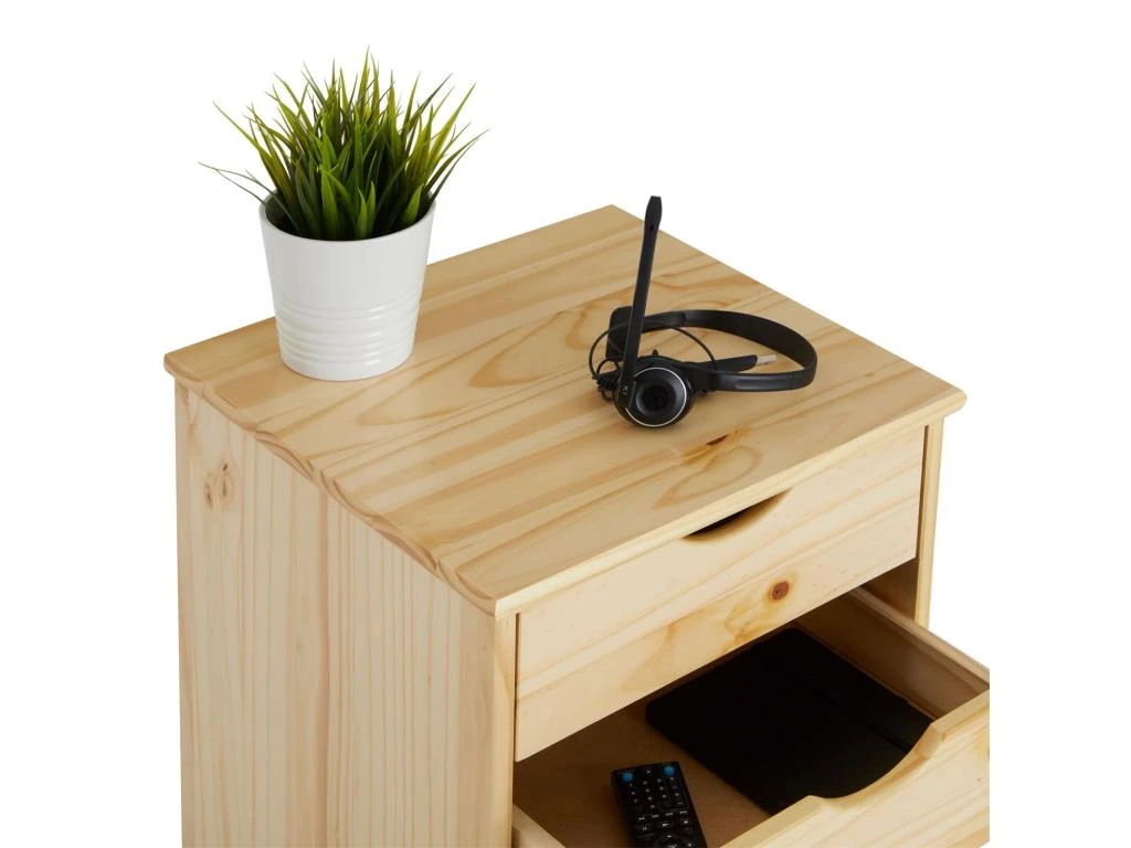 – Le caisson de bureau est fabriqué en pin massif, à la finition naturelle.