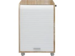 Meuble gain de place, grâce à son rideau qui coulisse de haut en bas.