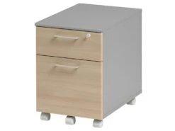 Caisson de Bureau Noir, Rideau Imprimé + 2 Tiroirs, sur Roulettes