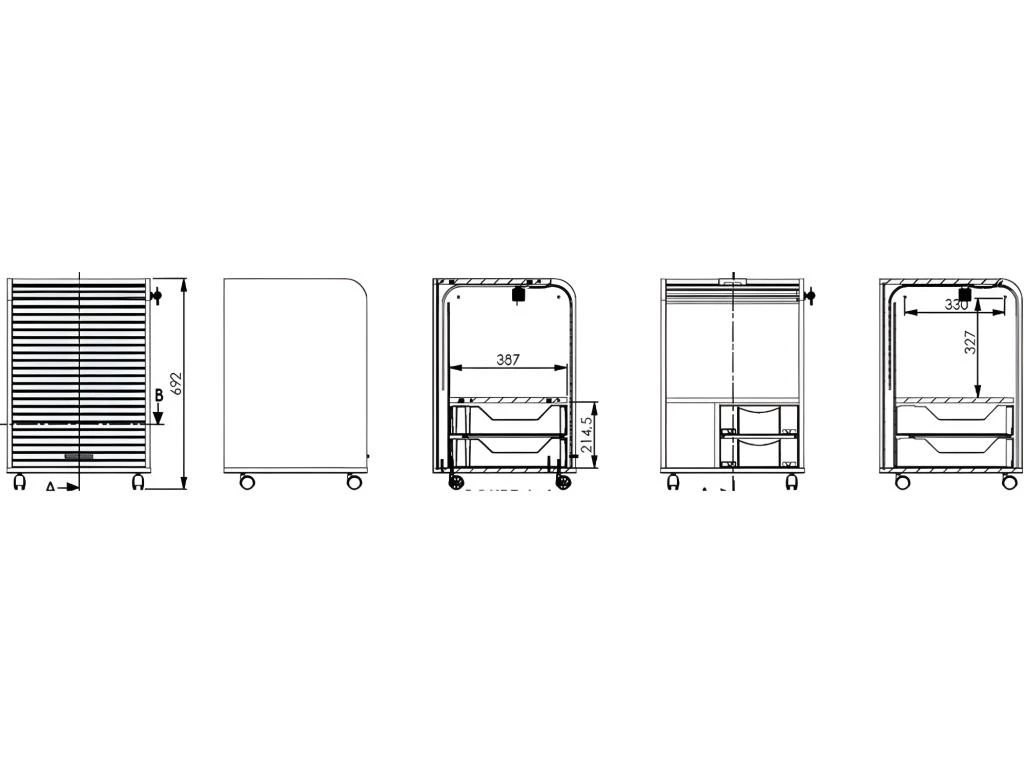 Meuble gain de place, grâce à son rideau qui coulisse de haut en bas.
