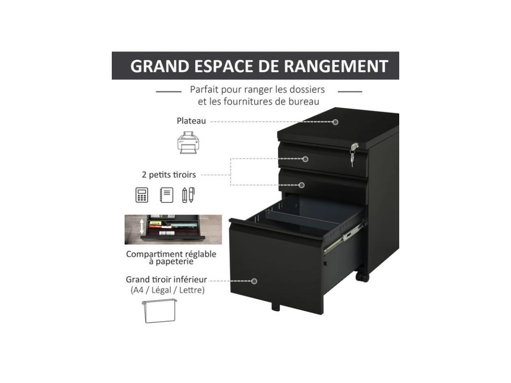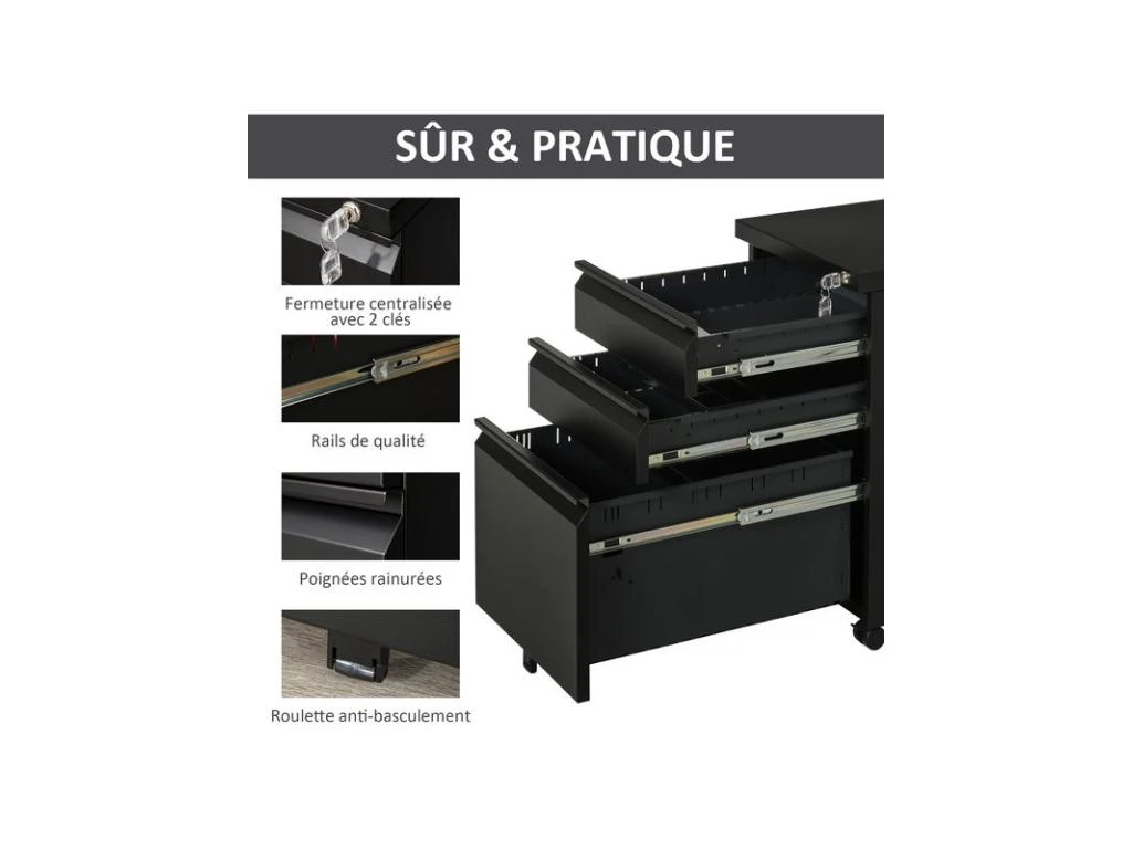- Charge max. recommandée : 50 kg (au total), 15 kg (par tiroir)
