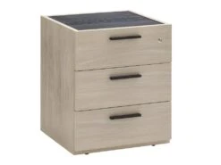 Tendance et élégant, son plateau noir contraste avec l’ensemble chêne clair. Il s’harmonise parfaitement avec le bureau et les meubles de la collection Leonardo.