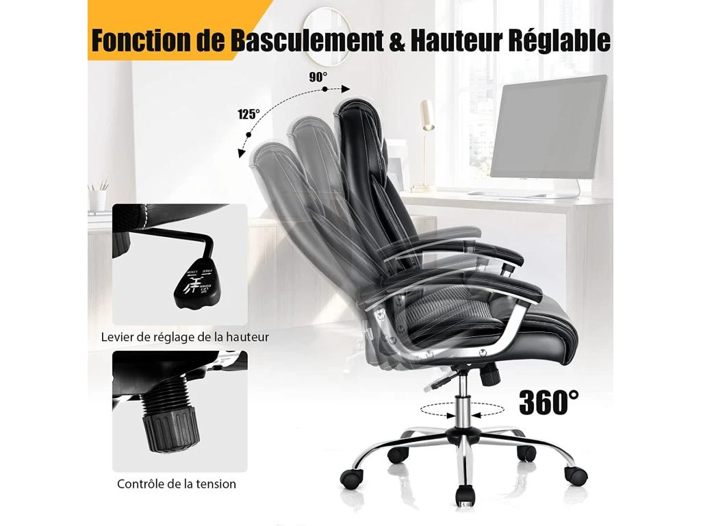 Chaise De Bureau à Dossier Haut, Fauteuil à Bascule Réglable En Hauteur