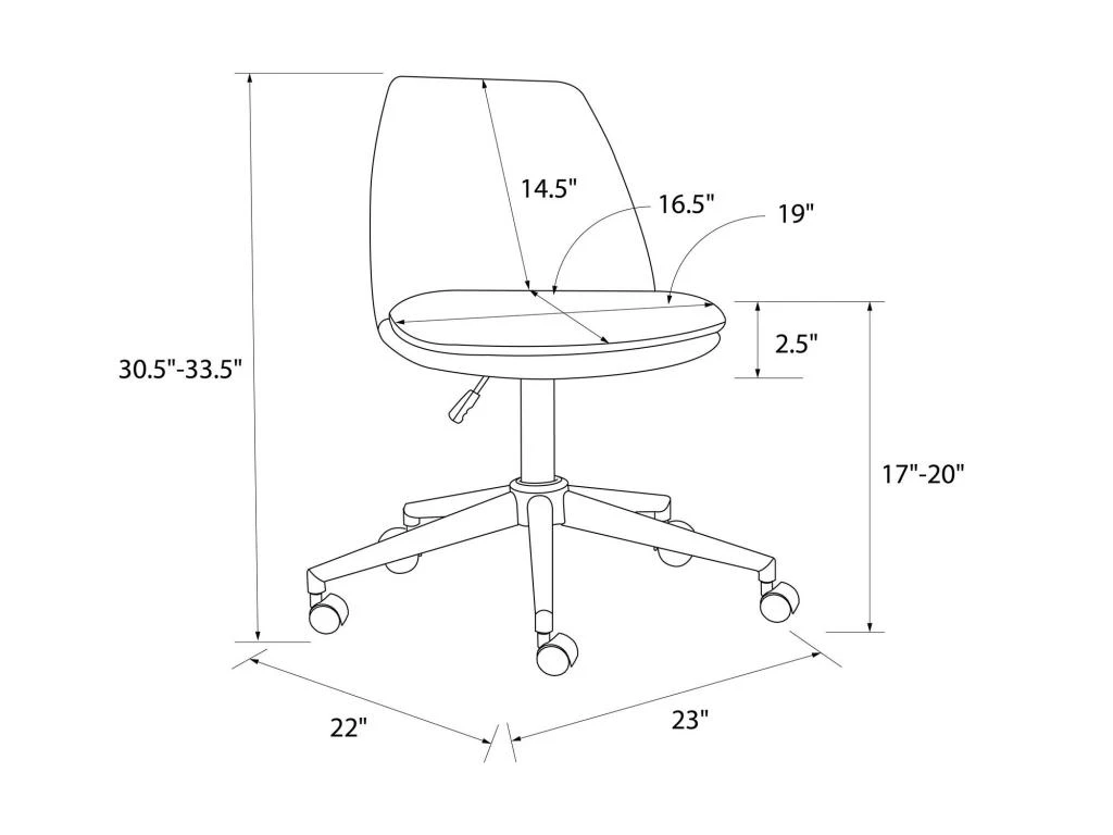 Comprend un mécanisme de levage à gaz qui permet de régler la hauteur du siège entre 17 po et 20 po. Siège coussiné pour un confort accru pendant vos longues heures de travail ou d’étude.