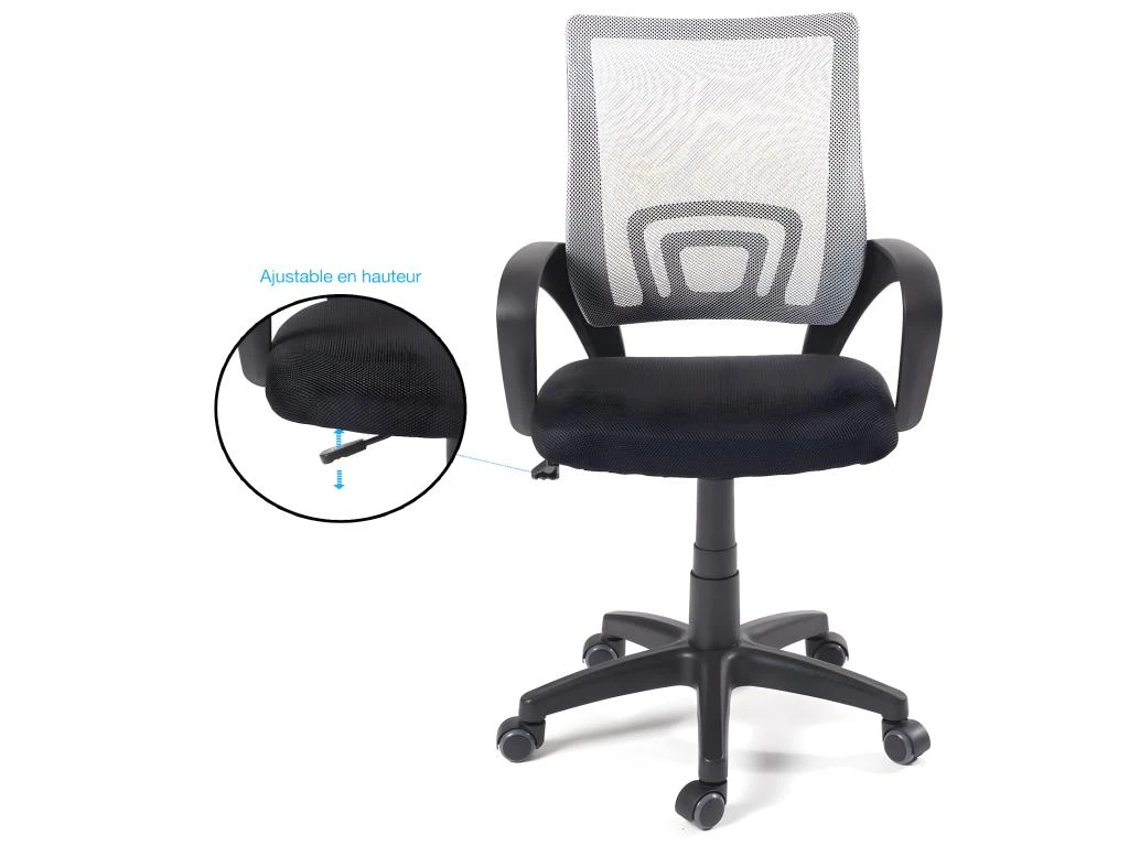 Pivotante, Hauteur ajustable, Maintien lombaire, Avec roulettes