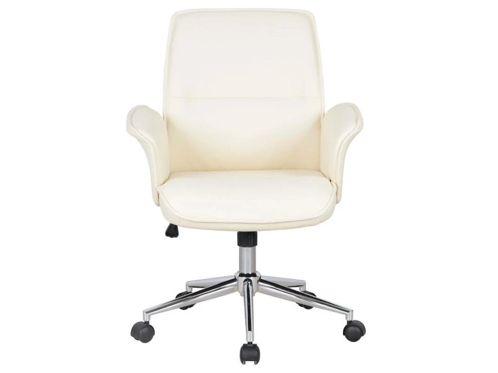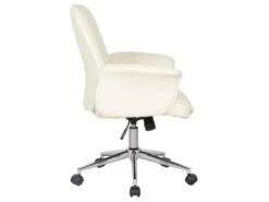 Nous vous présentons cette chaise de bureau en similicuir blanc. Son réglage en hauteur continu et son siège pivotant vous permettront de trouver la position idéale lors de votre travail. Ce fauteuil de bureau stable et résistant vous apportera un confort optimal.