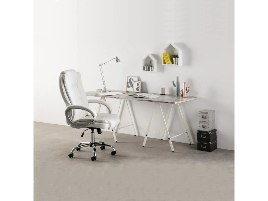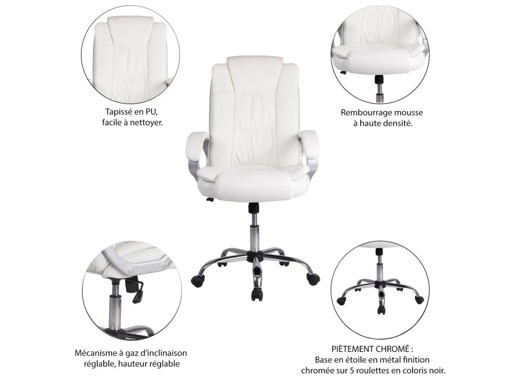 - Pied en étoile (5 pieds) métallique et chromé pour eviter l’usure de la peinture avec un diamètre de 68 cm et qui peut supporter un poids homologuée de jusqu’à 150kg.