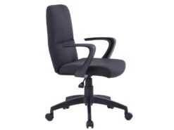 L’état d’un fauteuil de bureau peut alléger votre journée, c’est le cas de cette chaise dont le siège et le dossier sont en tissus (100 % Polyester). Son pied en étoile cinq branches équipées de roulettes stables est très pratique et vous facilitera la vie. Les accoudoirs sont en plastique rigide d’où sa résistance aux chocs. Le siège pivotant par 360 degrés est très pragmatique et il convient à tout le monde, car le poids maxi de l’utilisateur est de 100 kg environ avec une taille d’assise de 44×40 cm. Vous n’aurez pas de difficultés à l’installer, car l’article sera livré démonté mais avec un montage simple. Sa couleur Noire lui donne toute sa commodité. Cette chaise de bureau s’adaptera à toutes les superficies avec sa hauteur de 80 cm-87,5 cm, sa largeur de 56 cm, la distance de son siège et de son dossier de 57cm.