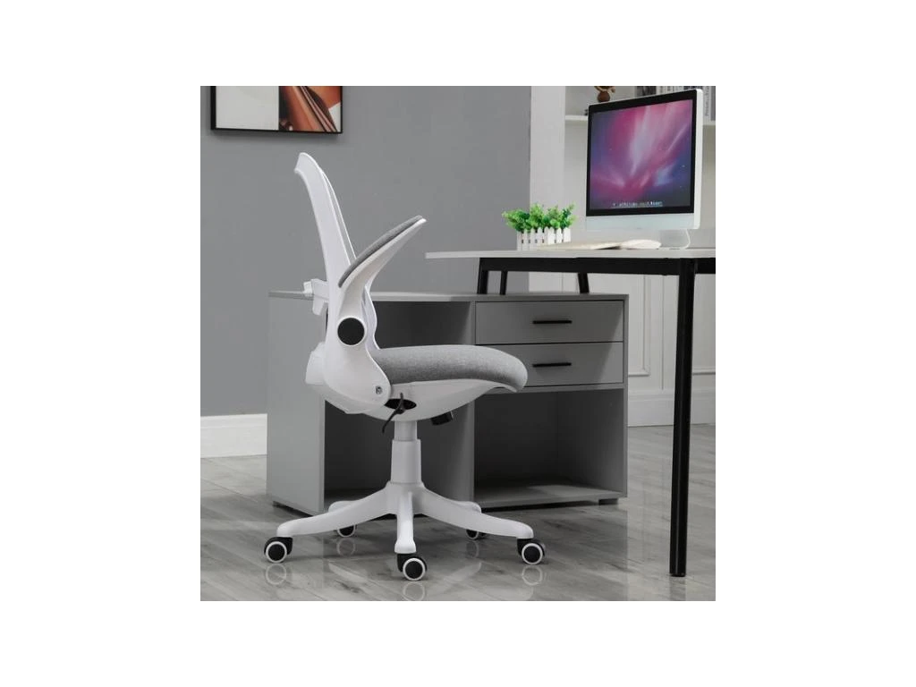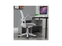 Design et délicieusement rétro, la chaise Vadim de MYCOCOONING séduit par ses courbes arrondies qui apportent de la douceur au bureau. Ses accoudoirs sont relevables afin de gagner encore davantage de place lorsqu’elle est rangée contre le bureau. Son revêtement en tissu de lin est agréable au toucher et l’assise est confortable et moelleuse grâce au rembourrage condensé de mousse haute densité. Le siège pivote à 360° et il est totalement mobile grâce à ses 5 roulettes multidirectionnelles.
