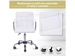 Parce que chez MYCOCOONING nous pensons à votre confort, cette chaise de bureau sera parfaitement confortable grâce à son rembourrage moelleux en polyuréthane présent dans son siège et son dossier. Avec son design élégant et sa couleur blanche, cette chaise au fauteuil pivotant sera des plus pratiques devant votre ordinateur avec ces 5 roulettes.